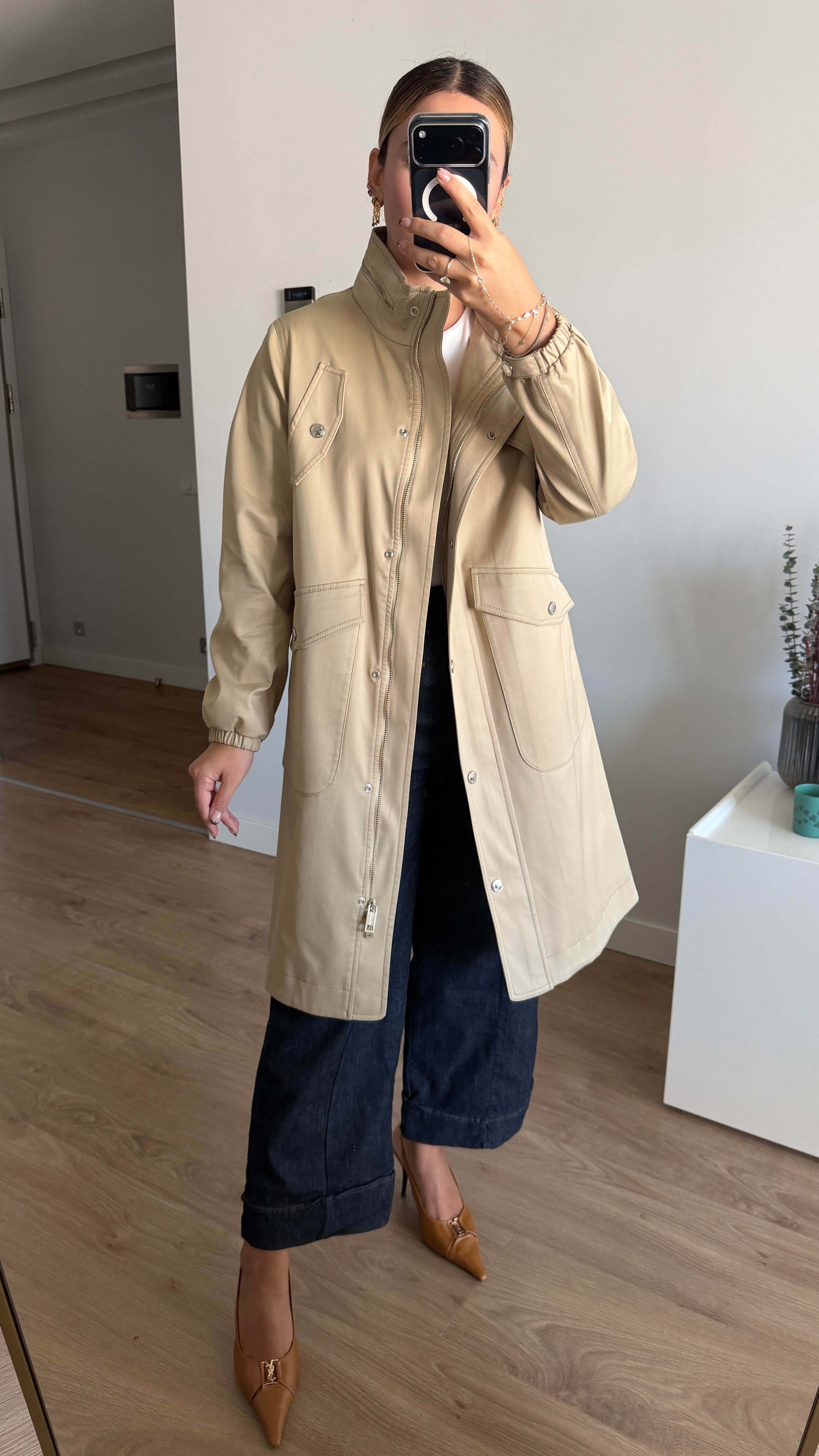 🔹 Şıklık ve Fonksiyonelliği Bir Arada: Suya dayanıklı kumaşı sayesinde yağmurlu günlerde konfor sağlar. Çift yönlü fermuar ve çıtçıtlı kapama sistemi ise hem pratiklik hem de stil sunar.