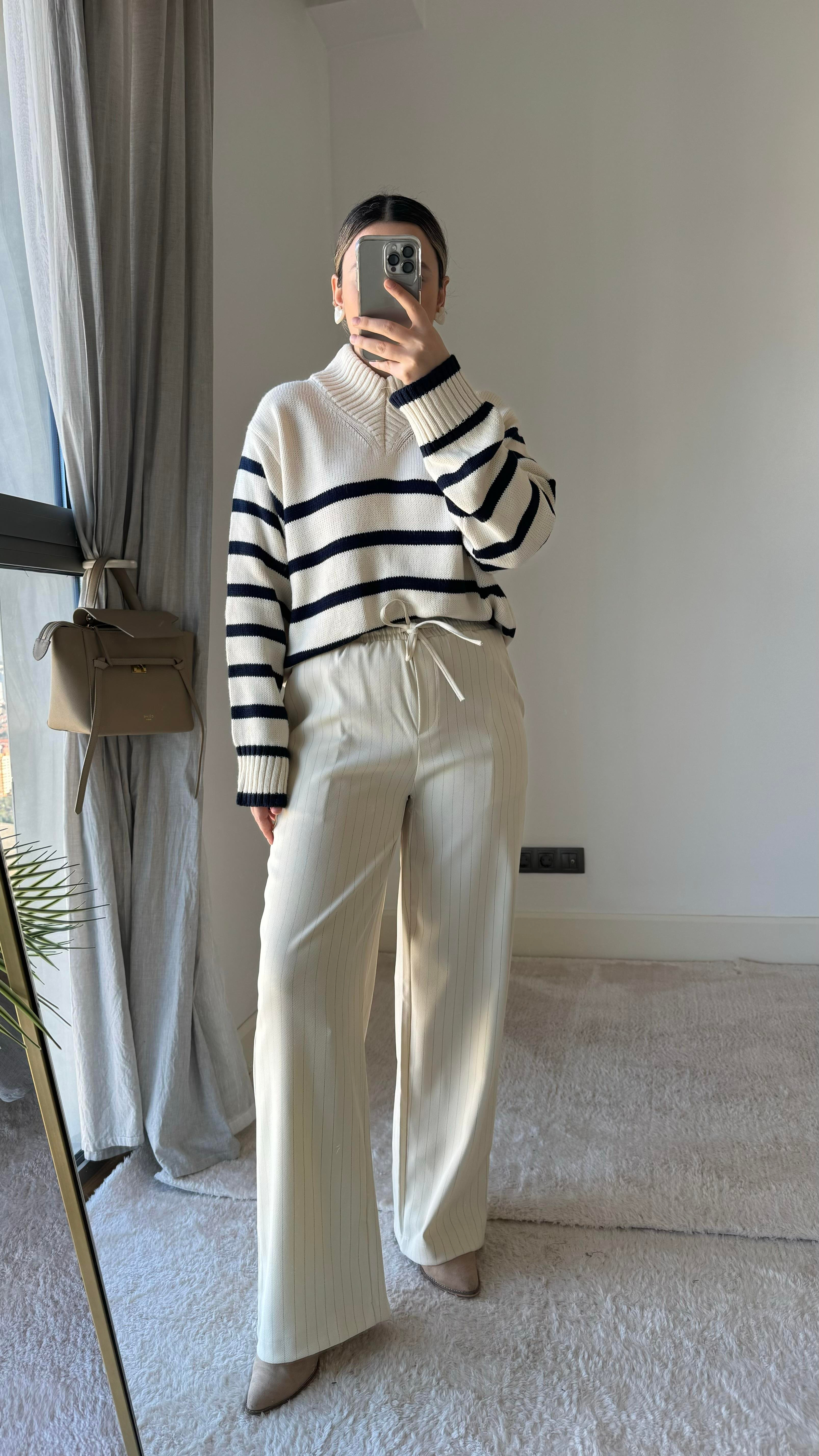 YÜKSEK BEL LACİ ÇİZLİGİ PANTOLON